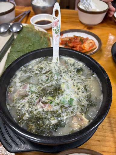 the food was delicious and good value for money. The owners are super friendly and accommodating for customizing a dish for us, adding potato hand-torn noodles (sujebi), which has nice chewy texture, into the kimchi stew (jjigae). The gulfweed soup is a thick and delicious broth with pork innards (slightly gamey-er taste at the end). The beef soybean paste stew...