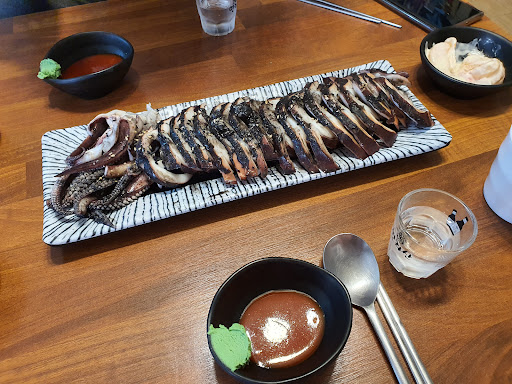Read more몇번 얘기는 들었는데 이렇게까지 맛있을지 몰랐다. 제주도에서도 무늬오징어는 귀한 편이라 아는 횟집에 들어왔다고 하면 무조건 가져다 먹지만 토끼트멍에서 먹은 무늬오징어 식감이 정말 좋았다. 다리는 숙회로 주는데 신선함이 살아있다. 오징어라고 다 같은 오징어가 아니라서 무느오징어는 정말 특별하다. 물회에 김이 들어가서 조화가 좋고 회덮밥도 소스가 과하지 않고 아이들도 좋아할 맛이다. 사장님의 세심한 서비스로 편안하게...