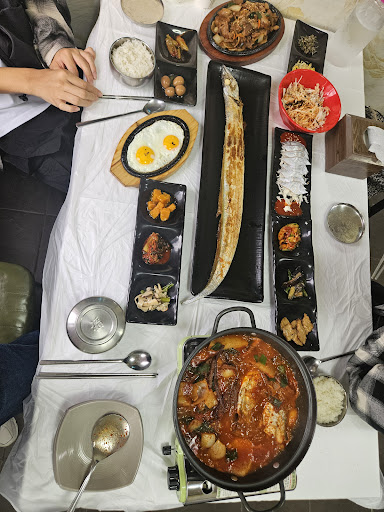 사장님도 친절하시고, 서빙하는 직원분도 친절하셔서 기분좋게 주문하고 먹을 수 있었어요. 저희는 3인이라 팔도한상차림 3인세트 시켰는데, 갈치조림+ 갈치구이+ 갈치회+등등... 다양하게 맛볼수 있어서 좋았어요. 애들이 갈치조림 국물에 밥비벼서...