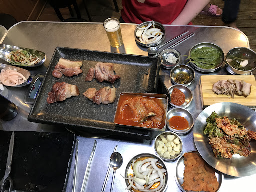 Poor hygienic practices led to one of the worst outbreaks of food poisoning me and my partner have ever had. I had terrible intestinal and stomach cramps/she developed a fever). I suspect it's how the meat was handled -- smoked partially, left to sit out (way too long) until finished on the grill -- the uncooked smoked meat was also placed right next to where the ajumma was handling vegetables.