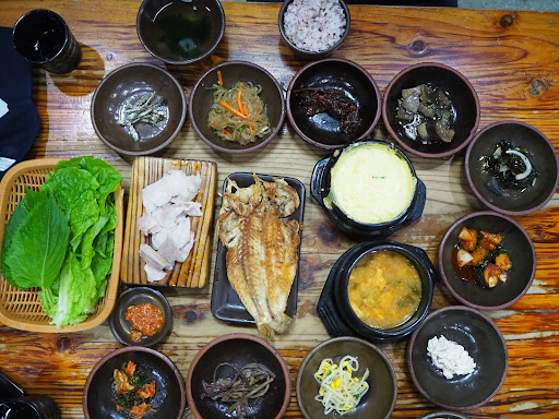 ย ย ย Read moreI'd call it a "cheap and cheerful" kind of place. Definitely not for carnivores - the amount of pork and fish for two people is very tiny. There are a lot of little plates with various vegetables, and something resembling scrambled eggs, so you won't leave hungry - but we've had better meals in Korea. Mind you, they were 4 times as expensive. So, prepare for a relatively simple meal that's very affordable and you won't leave...