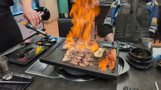This was way way better than at a similar shop in so-called Black Pork Street in Jeju-si. Not sure why, but someone suggested it could be because of the ceramic hot plate they used. The staff here is also more attentive, probably due to the smaller shop and late hour (we were there around 8pm).