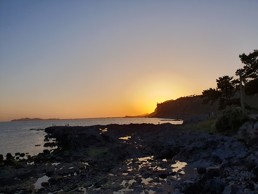 Free pics of blooming canola flowers in front of the cafe, with coastal background. This is so much better than the 1000KRW token charged by farmers in Sanbangsan nearby, one of the last places in Jeju with blooming canola flowers. Lots of people will explore the shoreline out front, take plenty of pics, then to the cafe, take plenty of pics of the canola flowers and sunset - and maybe purchase some drinks there. Parking at the cafe is free, and spacious. The cafe is large, with two storeys. The upper level is open air. Coffee is quite mild. Hallabong ade tea is not bad, but quite sweet. Pricey but expected for the beautiful views. Service is mediocre. The staff looks overwhelmed and exhausted from the...