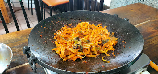 Read more혼자 버스타고 11시에 도착하자마자 문을열었더니 관광객 1팀만 있었음 두루치기와 밥한공기를 주문했더니 이미 양념이된 고기가 커다란 양푼안에 가득 들어있었는데 그걸들고오시면서 먹을만큼 퍼서 넣으라고함 이걸 먹을생각에 아침을 먹지않고 와서 이미 많이 배고픈상태였음 혼자서 고기 2인분정도를 넣고 김치와콩나물,파가 들어있는 야채1그릇을 같이넣었음 주인아주머니가 오셔서 서리태콩잎에 자리돔젓갈과 두루치기같이 먹으라고 한테이블씩 돌아가면서 알려주시고 어떻게혼자왔는지와같은 대화도하면서 친절하게대해주셨음 여기는 무조건 생고기만 쓴다고하셨고 나와 먼저온 관광객1팀을제외하곤 모두 제주도민분들로 꽉차있었음 8000원이란 가격으로 배터치게 먹었다 언젠가 한번쯤 놀러오면 먹으려고 벼르고있었는데 오게되어서 신났고 막 엄청맛있다는 아니지만 엄마,할머니가 해주신음식같았다 요즘 제주도외식물가가 기본 만원인데 8000원이란 가격에 생고기두루치기를 마음껏 먹을수있는곳은 드물다 제주여행왔으면 한끼정도는 먹을만하다고 생각이든다