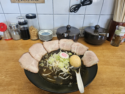 Read more가게 분위기서부터 라멘 비쥬얼까지 일본 느낌이 물씬 느껴지는 곳이에요 돈코츠계열 중에서도 제주에서 보기 힘든 쿠로마유돈코츠라멘과 추가차슈 주문했습니다 면은 얇은면, 국물은 진한편은 아닌듯하고 돈코츠육수지만 깔끔했어요, 차슈는 수비드 한 차슈로 보여요 뻑뻑하지 않아요 차슈 외 토핑 숙주,파,맛계란,나루토어묵과 흑마늘기름이 올라가 있어요 흑마늘기름이 잡내도 잡아주고 국물과도 잘 어우러져요 라멘을 반정도 먹다 양념통 양옆으로 있는 깨,마늘후레이크를 추가해서 먹었더니 이것도 맛있었어요 밥,면이 무료여서 추가해서 먹어도 좋을것 같아요 일본 현지 음식 비쥬얼이지만 국물에 간이라던가 재료에 간이 한국사람들이 먹기에 적절하게 잘 맞춰진 느낌이에요 쉐프님이 염도에 대해...