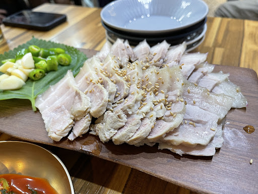 The shop lies on a food street, but not touristic. The food is nice and baby friendly. I heard that the shop is husband-wife owner. When we came there, the husband helped my toddler sit on babychair, and when we left he helped him wear his shoes, zip up the jacket. My baby can only rice and even rice is not on the menu, they gave us rice from their rice cooker which is for their dinner I guess. It's free, but it's one of the nicest rice we have in Jeju - chewy, frangrant, I want to order 1 more but scare I eat away their dinner 🤣 I guess its from buckwheat and frangrant rice. If you read this comment owner, could you share the recipe of it so I can cook for my baby again 🥰?