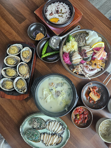 Food overall is nice. Grilled abalone is the best of the dishes 20K won for 7 pieced. The set came below is 52k won worth for such big portion of seafood, oxtail bone broth soup, etc. The colorful seafood sesame sauce cold noodles is the best seller dish however quite overrated, wouldn't order again.