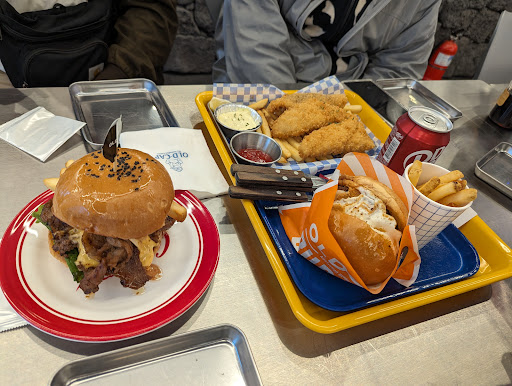 시그니처 메뉴인 올드캡 버거는 피시 버거입니다. 보통 기대하는 소고기 민스 패티가 들어간 버거를 원한다면 비프버거를 선택하시면 됩니다. 충분히 맛있는 피시 버거인데 통상 아는 비프버거 기대하다가는 놀랄 수도 있습니다.