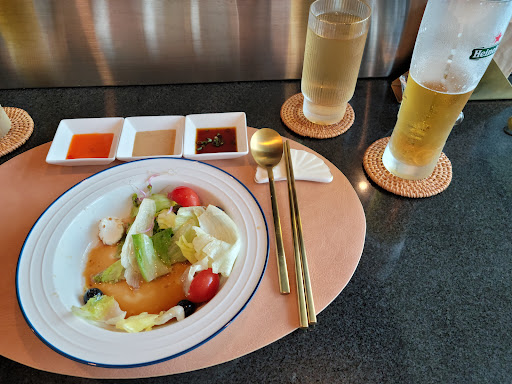 Read more오직 우리를 위해 도착 전 정갈하게 세팅된 샐러드부터 감탄 자아내고 눈발 날리던 바깥 풍경은 거들뿐 ㅋㅋ 새우 머리 처음 먹어봤는데 바삭하게 구워 주셔서 풍미와 함께 고소함의 세계를 처음 경험했어요 부드러운 한치, 성게알크림소스를 곁들인 전복, 입안 가~득 육즙이 꿀꺽 넘어가는 알등심과 부드러움의 극치 새우살, 마늘향 입은 부위까지 먹고 나와서도 입안 가득했던 육즙 기억 되새기면서 또 오자, 꼭 오자 말하면서 한껏 웃었어요 10월에 예약 실패해서 아쉬웠다고 말씀드렸을 때 공감해주시면서 친절하게 응대해주신 사모님 때문에 좋은 기억 하나 더 추가요! 함께 간 일행 중에 저만 도민이라고 볶음밥 살짝 더 담아주셨어요 ㅎㅎㅎ 마지먹 잘 숙성된 레드키위까지 세상 푸짐하게 딱 기분 좋은 포만감 안고 갈 수 있었어요 꼭 마당에 수국 필 때 또 방문할게요 쭉쭉...