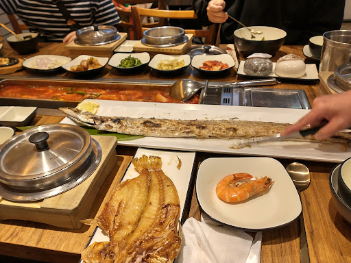 The abalone was live at the dinner table before it was cooked. A bit smaller than other places, but I will happily admit it was very tasty. The belt fish (kalji) was excellent. The rice was at once chewy and tender at once. The rest of the meal was good but not as good as I had been lead to believe by YouTube foodies.