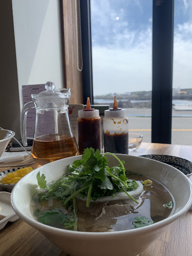 Today I visited “tot.tot,” a Vietnamese noodle restaurant in Onpyeong-ri, Jeju. Eating warm Vietnamese food while enjoying the beautiful view of the Jeju sea was such a unique and refreshing experience! The menu has a great selection—beef pho, Chinese-style pho, bún bò xào, black pig teriyaki rice, and Vietnamese spring rolls. I heard their beef pho and banh mi are especially popular.