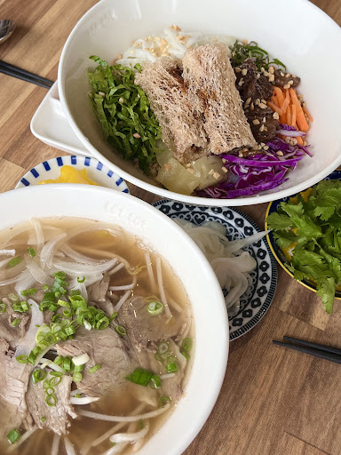 저는 양지쌀국수와 분보싸오를 주문했는데, 쌀국수의 국물이 정말 맛있었고, 분보싸오에 같이 나오는 짜조(베트남식 튀김 롤)가 바삭하고 고소해서 배부르게 잘 먹었습니다. 넉넉한 양과 멋진 바다 전망까지 갓벽합니다.