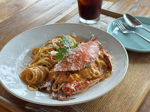 Thai curry crab ๐ฏ Black pork carbonara was good
