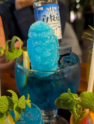 The overall atmosphere of this place is absolutely amazing. Very intimate, yet enough for a social gathering. The lights and atmosphere were very inviting and very elegant yet inviting. The service was impeccable, they offered to play any music of our choice, which allowed my husband and I to have an intimate dance for our wedding song since it's our honeymoon. They allow song selections upon request which is a very fun option, as it allowed my group to revisit all of our wedding songs. The drinks were beyond expectations, the price is well worth it and the server explained to us who had no idea how to enjoy our drinks. A great variety of different flavors, Jeju beer, wine, and the best part was they had decorative non alcoholic drinks which was a huge plus (we had an expected mother in our party). The drinks alone are very impressive, with an ice design of the Jeju statue; the vibe of the drinks were so much fun! I would highly recommend this place as it was very comforting to foreigners which was our worry about being here at Jeju. I would definitely come back again, and highly recommend this place to anyone visiting Jeju. It's well worth it, and well worth the drive if you are staying on the west coast. The appetizer we ordered was roasted Brie cheese with honey syrup and nuts and it was to die...