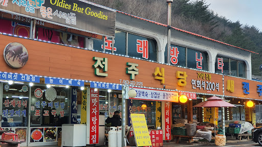 무주리조트 곤돌라 타고 내려와서 식사할 곳 찾던 도중에 리조트 근처 갈까 하다가 여기까지 와 봄. 가게가 많은데 여러 리뷰 보다가 거기 현지 주민이 여기 괜찮다 해서 가긴 감. 참고로 가게 앞 차 댈 수 있는 곳에 여기는 ㅇㅇ식당 주차장입니다 하는데 무시해도 됨. 자기들이 그냥 붙인 거라고 거기 주민이 말 해줌. 처음에 차 대니까 평점 가장 낮은 진미식당에서 바로 이쪽으로 오라면서 손짓함. 우리 다른데 갈 때까지 계속 앞에서 뭐라 함. 분명 '무주구천동 일대는 호객행위 하지 않습니다'이란 팻말 있는데? 구천동맛집도 이쪽 오세요 하길래 패스. 원조할매보쌈 이집은 호객행위 하지 않습니다라고 자체적으로 써걸어 놨긴 했음. 전주식당 이집도 앞에서 서성거리니까 여기 좋습니다 오십시오 하면서 살짝 호객하긴 했는데 일단 들어감 돌솥 3인+해물파전 시켰음. 앉은 테이블 바로 옆자리 보니까 누가 반찬 거의 손 안 댄 채로 남기고 갔던데 치울 때 반찬 한 곳에 안 쓸어담고 큰 쟁반에 올려서 주방쪽으로 갖고 가더라.. 나중에 나온 반찬 보니까 비슷하던데 아니겠지 하면서 먹음. 이건 보고 든 개인적인 생각이니까 알아서 믿길. 양은 생각보다 많음. 가격은 그렇다 치고 많이 시켜보지 않아서 잘 모르겠지만 파전 사이즈 이정도로 큰 건 처음 봤음. 반찬은 그럭저럭 괜찮음 맛있다고 하는 일행도 있더라 된장도 기본으로 나오는데 양 적당함. 나중에 김치전 서비스로 주더라. 보통 다른데서 돌솥 시키면 딱 그거만 나오는데 확실히 이 집 양은 엄청 많이 줌. 거기다가 모자라면 더 줄테니 말하라고도 하더라. 따로 추가결제는 없었음 딱 시킨 그대로. 사장은 친절하다는 건 맞는 말인듯. 물론 지금 리뷰쓰는 기준. 맛은 난 괜찮았음 엄청 맛집은 아니고 괜찮네 정도 같이 간 일행은 나쁘진 않는데 특이하다라고 함. 타 지방이라...