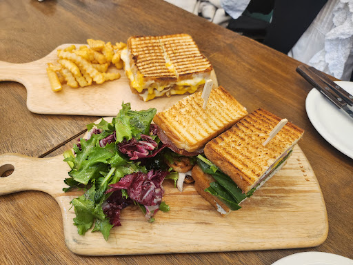 Read more일단 매장 안이 너무 추웠음. 직원분들 응대가 너무 좋고 친절함. 비쥬얼 좋음. 커피맛도 괜찮음. 치즈파니니는 뭔가 임팩트가 없음. 감자튀김 실망. 빵 실망. 클럽샌드위치 보기에 예쁘고 맛도 괜찮음. 다만 빵이 너무질김. 가운데 빵이 하나 더 있어서 매우배부름. 치즈파니니 먹고 클럽샌드위치 가운데 빵 빼고 먹으니 간이 딱 맞음. 전체적으로 건강한 맛....