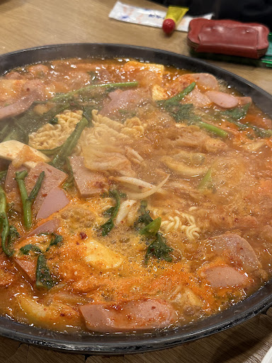 Read more슴슴한 육수의 부대찌게 우동사리 외 아무것도 추가하지 않고 먹었더니 부대찌게인지 잡탕찌게인지 살찍 애매 맛있게 먹으려면 햄쏘세지등을 추가해여 깊은 맛이 나려나 하고 살짝 갸우뚱 부대찌게에 다진고기도 거의 찾아보기 힘들었다 무엇보다도 라면사리 조차도 추가로 주문해야 한다