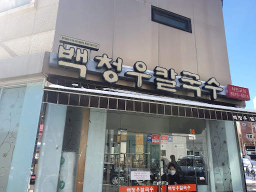 Read more2020.4. 판교라지만, 서판교다보니 한적한 동네에 주택가같은곳이지만 가게들이 있는 대로변과는 멀리 떨어진 곳에 있어 초행길이 찾아갈 때는 네비를 잘 보고 찾아가야 함. 실내는 넓지는 않음. 사장님이신지는 모르겠지만 일하시는 분은 상당히 친절하게 해주심. 칼국수는 백청우칼국수니 더이상 말이 필요는 없음. 다만 지점마다 해물 미더덕 바지락 같은게 조금씩 차이는 날 수 있으나 대부분 보통 이상의 수준임. 골목 안쪽에 있다보니 주차는 골목...