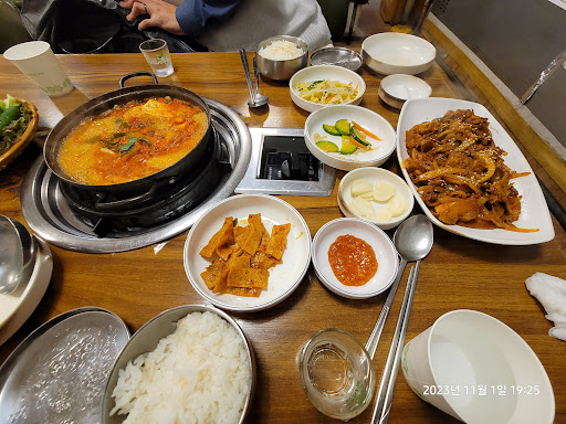 Read more탁자 열개 내외의 김치 찌개집인데, 김치 삼겹살도 같이 판매하는 오리역 3번 출구 뒷쪽의 먹자 골목집입니다. 회사 동료가 자주 가는 곳이라고 해서 같이 저녁 식사를 했습니다. 가격도 적당하고 삼겹살에 같이 구워 먹는 김치 구이가 아주 훌륭합니다. 김치 찌개로 유명한 집이라서 저녁 식사를 하기 위해서 오시는 분들도 많습니다. 요즘 코로나로 힘들지만, 열심히 일하시는 사장님에게 박수를 보내드립니다. 다른 분들이 찍어서 올린 사진을 보세요. 사진 그대로 입니다. 생고기의 쫄깃한 식감과 누린내 없는 고기와 김치를 같이 볶았을 때의 그 맛은 또...