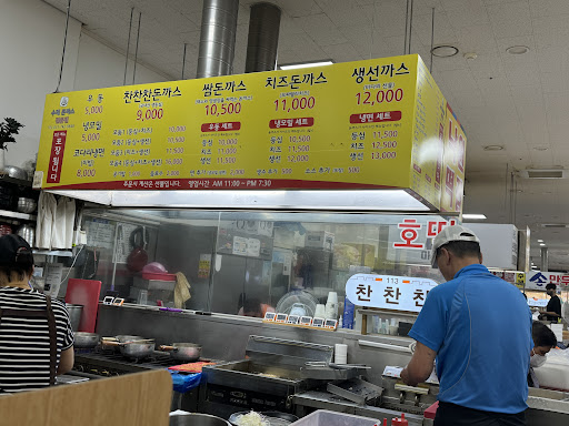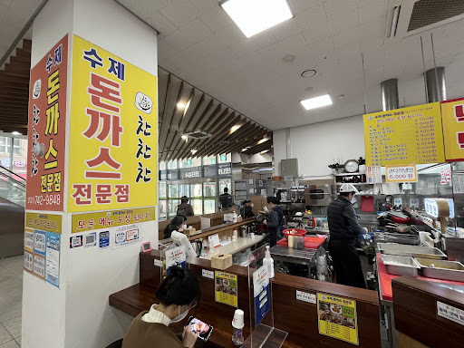 Read more여기는 숨겨진 맛집이에요. 최근 가족과 한달에 2-3번은 꼭 가서 먹습니다. 돈꺼스 안 좋아하는데 여기는 아저씨께서 고기 직접 두들겨서 얇게 만들어 주문 들어올 때 바로 빵가루입혀 튀겨줍니다. 그래선지 완전 고소하고 가벼운데다 직접 만든 통후추 넣은 맛난 소스 푹 찍어먹음 고소힘에 살짝 상큼? 정말 최고에요. 깍두기도 직접 만드시고 정성도 최고, 위생도 최고 (조리할때마다 위생장갑 갈아끼시고 쟁반도 식기세척기에 넣어 닦으세요) 등심 생선 치즈 냉면 모두 맛있으니 여럿 가셔서 나눠먹으면 좋습니다. 일본식 두꺼운 돈까스 별로인 분들께 더더 추천 단, 공간이 좁습니다. 공설시장 건물 1층에 ㄱ자...