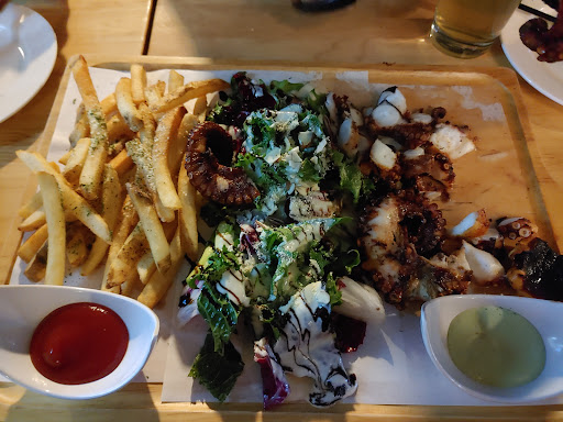 The octopus with chicken and fries is quite good and very reasonable price 32k and serves 3 people. Golden ales om the tap are quite good as well and 7k per beer. Would come back with friends for an after work. Nothings is "crazy" delicious. But very fair...