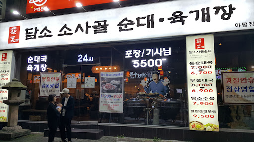 If youโre craving a hearty bowl of sundae-guk (Korean blood sausage soup) at any hour of the day or night, this place is a must-visit. Open 24 hours, itโs perfect for late-night cravings or early morning comfort food. The restaurant boasts an impressive amount of seating, making it an ideal spot whether you're coming in solo or with a group.