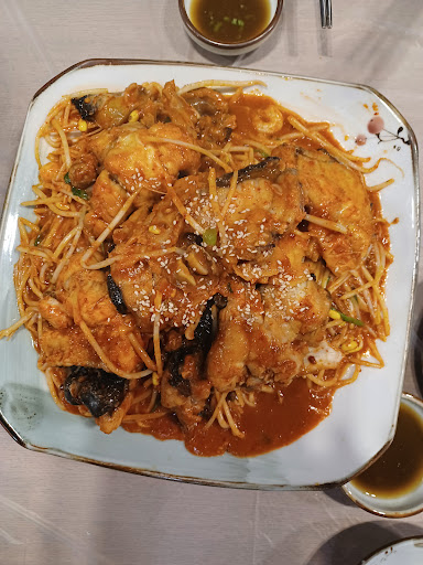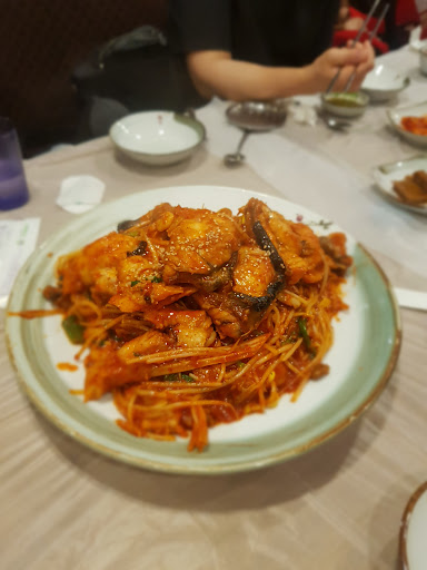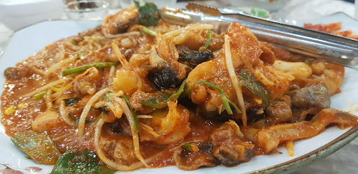 This was the second time I visited this place, and I could tell the freshness of the seafood by its juiciness. We are asked to choose among their 6 levels of spiciness to flavor our steamed monkfish (Korean ์๊ท์ฐ). Even as someone who is not a fan of spicy foods, level 4 was on the milder side and tolerable. Packed with people, and the turnover rate...