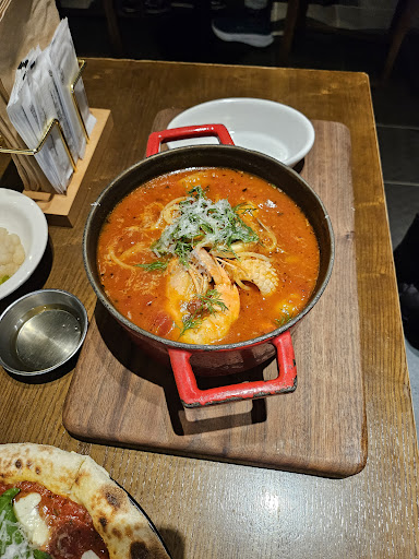The food well above average. The Margherita Pizza was very good, though the tomato topping was a bit cold and overly sweet. The pasta was very flavorful, and the seafood ingredients were fresh. The octopus salad was equally good.