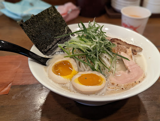 Read more그 동안 국내에서 먹은 돈코츠 라멘들은 뭔가 심심했는데 여긴 국물이 진하고 고소합니다. 면의 익은 정도도 아주 익거나 설익지도 않았고 절묘합니다. 라멘 위에 올려져 있는 얇게 슬라이스 된 생 양파와 파채를 면과 함께 먹으면 알싸함과 진하고 고소한 국물의 맛이 섞여 너무 맛있습니다. 삼겹 차슈도 고기가 야들야들하고 딱 좋은 상태입니다. 챠슈 추가도 했는데 양도 푸짐합니다. 사진에 보이는 챠슈 밑에 더 깔려 있습니다.