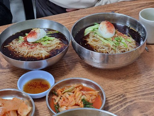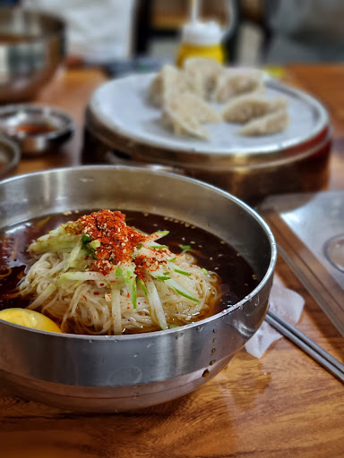 Read more개인적으로는 일반적인 냉면보다 소바에 가깝다고 느낀 음식입니다. 이게 진짜 평양냉면이라고는 하던데 한입 딱 먹고 갸우뚱 하는게 요즘 유행하는 평냉집과 비슷하긴 합니다. 다만 맛의 카테고리가 전혀 달라 냉면을 생각하고 가면 안될거에요. 간장 베이스육수에 고춧가루가 더해져 오묘한 맛을 냅니다. 일본식 소바에 무와 와사비 대신 고춧가루를 넣으면 비슷할 것 같아요. 저는 맛있게 먹었습니다만 동행들은 아니었던 것 같습니다. 맛이 없진 않지만 무슨 맛인지 모르겠거나 아무맛이 안난다는 의견.. 이런 부분이 평냉과 똑같았어요. 만두도 맛은 있었지만 시판 만두와 크게...