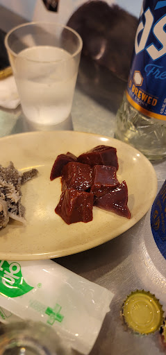 Read moreホルモン焼き?が食べられるお店でホルモン好きな方にはオススメなお店◎ ココはお店のおばちゃんが食べられるようになるまで触ったらダメなスタイルなので、 おばちゃんが食べて良いよって言うまで待ちましょう(笑 私たちは今回2人で来店して『生모듬(センモドゥム)※49,000ウォン』を注文しました。 以前3人でこれを食べた事もあって、 2人じゃ多いかなぁ〜なんて思ったのですが、2人でも大丈夫だよっておばちゃんも言うし、 こちらのメニューにしました。 ちなみにこのメニュー大腸、小腸、ギアラ?マルチョウ?、ハチノス、ハツの盛り合わせです。 飲み物は〜?とおばちゃんに聞かれましたが、 当方お酒が飲めないのでサイダーを頂きました。 焼いて少しするとおばちゃんがハチノスとハツだけは食べて良いよ〜と教えてくれます。 ハチノスは柔らかくて美味しいです。 またおばちゃん部位も日本語で教えてくれて、 有難い〜 他の部位も早く食べたい気持ちを抑えつつ、 おばちゃんがしばらくするとやってきて、 余分な油を捨ててから仕上げの焼きに入ります。 そしてしばらくまた焼いていくと、 食べ頃だよ〜と教えてくれるので、 ここでやっと残りのホルモンを食べ始めましょう。ギアラやマルチョウだけはちょっと硬めな気がしますが、日本であんまり食べた事がなくて比較出来ません...。 でも本当美味しい〜。やっぱり韓国はホルモンが美味しい国ですね! あとこちらのお店はおかずに生センマイとレバー刺しが付きますので、 是非ごま油と塩で食べて見て下さいね!(おかわりしなかったけど、出来るかも?聞いてみて下さい) きゅうりとにんじんはサムジャンという味噌に付けてそのまま生で頂いて下さい。 最後に볶음공기※3,000ウォン(焼飯)も食べようと思ったのですが、次にはしごで何か別の物を食べたかったのでこのまま退店しました。 でもここを利用する方にはこちらも必ず食べて頂きたい‼︎ お値段は2人だとちょっと高い気もするのですが、ホルモンが好きな方はぜひ1度...