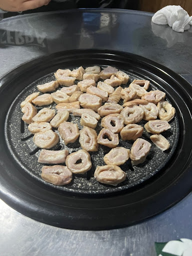 대구 스타일의 막창으로 씹자마자 느껴지는 잡내 없이 퓨어-한 이 맛. 신선도와 손질 기술이 파악됨.! 노릇노릇하게 구워 마이야르 색깔로 뚜렷한 막창은 크리스피하지만 질깃하지 않아 자꼬만 들어가는 스낵 푸드 같다.