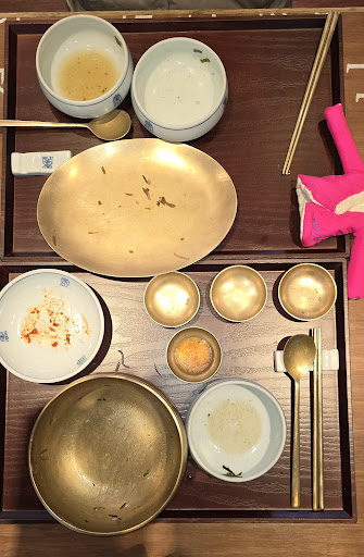 Genuinely terrible bibimbap, zero taste, the rice was clumped together and not cooked fluffy. You have to order yourself from a vending machine, pick it up yourself and return it yourself, none of which feels like the Michelin star that they proudly advertise outside. Spoke to the staff, it turns out that Michelin star is for the neighbourhood... And they've just conveniently put it on the branding for their restaurant... Imagine you lived in a UNESCO world heritage area, opened a cafe and then decided to imply that it's a UNESCO world heritage cafe by putting it all over your branding..... Combined with the fact that as they say on there table they give a free product to anyone that leaves a Google review, so take the five star reviews with a pinch of salt (something the food desperately needed). You can find a million better places, the staff were unfriendly, no one even said thank you or goodbye when we left, maybe because they see a lot of tourists but genuinely save yourself the effort. Look at some of the previous pictures, see that in one of the side dish bowls they put one cherry tomato, it's not really a side dish is it, it's one cherry tomato. This is not the place to go for good Korean food, Korean hospitality, Korean culture, this is the place to go if you like spending above average prices for below average taste.