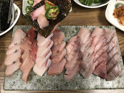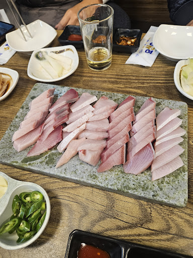 Read more아주 솔직히 저는 선어회보다 활어회를 선호해서 다시 방문할 지는 잘 모르겠어요. 다만 제 취향과는 무관하게 남도식 음식을 즐기고 싶다면 괜찮은 선택이라고 생각합니다. 일단 장이 남도식이고 김치도 배추김치와 갓김치 모두 양념이 진한 남도식입니다. 식당이 지하에 여기저기 홀이 흩어져 있고 주방이 멀리 떨어진 홀에 자리를 잡으면 인터폰으로 주문해야 하는데 잘 못알아 들으시더라구요 술은 냉장고에서 알아서 꺼내먹는 구조이고 계산도 주방있는 입구쪽 홀에서만 하게 되어 있어요. 회사동료부터 데이트족, 동네 친구들끼리 다양한 조합으로 방문하는 것 같았어요. 물론 데이트로는 그닥 권할 만한 분위기는 아닌 것 같아요. 남도음식 경험삼아 가보신다면 크게 후회는 없으실듯하고 기대하시면 좀...