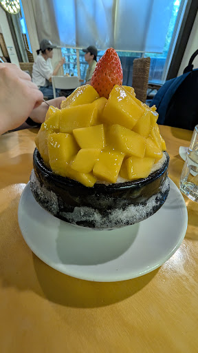 I wanted to try some bingsu and thought of supporting this small café. The menu was in Korean, but since I only speak English, I spoke with the owner who fortunately knew some conversational English. I mentioned that I wanted a mango bingsu.