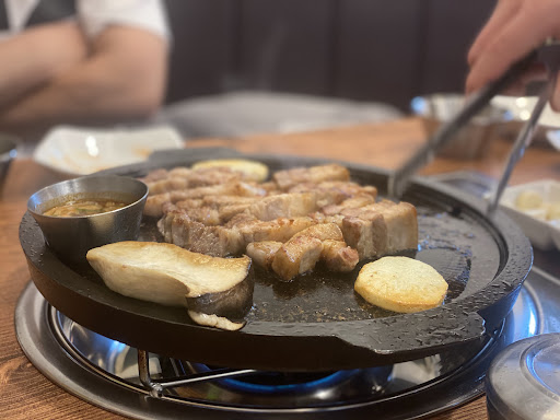 Read more먹는데 기름이 사방팔방십육방으로 튀어서 먹기 힘들었습니다. 바지와 옷에도 기름이 많이 튀었습니다. 앞치마를 달라고 하지 않았던 제 잘못이라고 생각한 순간, 얼굴에 큰 기름들이 튀어서 아팠습니다. 얼굴에 화상이라도 입을까 걱정되어서 물티슈로 닦으니 피부가 기름칠한 것처럼 맨들맨들 생기가 돌아 피부가 좋아졌습니다. 음식도 괜찮았고 서비스도 친절했으나 고기판 바로 위에 환기 시설이 없어서 냄새가 옷에 베일까 걱정되었습니다. 오래있으면 냄새베일까 두려웠습니다. 삼겹살 & 된장찌개...