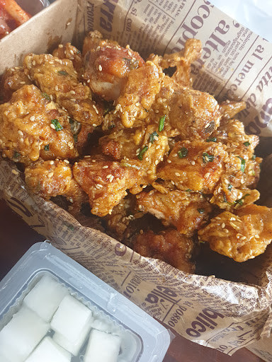 이 집의 시그니처 야채치킨. 교촌치킨 오지지널과 허니콤보를 합친듯 한 맛^^ 간장과 파의 풍미에 달달한 뒷맛이 어우러지는 치킨. 육질까지 달달한 점이 살짝 아쉽. 파와 깨가 엄청 들어 있어서 홈메이드 느낌이 나는 치킨. 겉면의 튀김 식감은 꽤나 단단한 편. 더운 여름 치맥은 언제나...