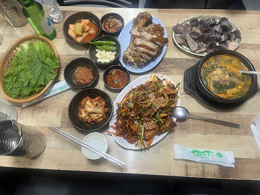 Read moreThis is a place where their goal is to feed people and not only making money. Big shoutout to them. The pork feet was excellent. Not too fatty and the meat was well-done but tender. The portions were very generous. We also got a Sundae guk soup (ksausage soup). They refilled several times, because they saw we enjoyed it. Also the banchan (ktapas) were refilled without delation. The steam sausage and organs were also delicious. Water and banchan are on the house. People goes to eat and drink well, don't expect a quiet place. ...