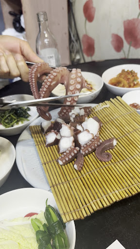문어 한마리를 시키면 통으로 한마리를 삶아서 내주시는 반찬들과 함께 먹으면 맛이 너무 좋음...... 먹다가 먹물 국물이 나오는데 그것이 몸에 좋은거라고 하는데 개인적으로 비위가 좋지 못해 그것을 다 들이킬 수는 없었음...