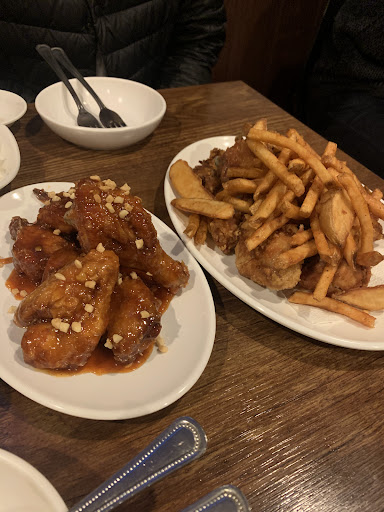 Did takeout of a mixed order of regular fried and flavored chicken. They included a small can of Chilsung Cider, pickled radish, and fries. The taste was great but the chicken was basically random squarish-cut chunks with not a lot of meat. The proprietors seemed friendly and the eat-in experience may be better but unfortunately I wouldn't...