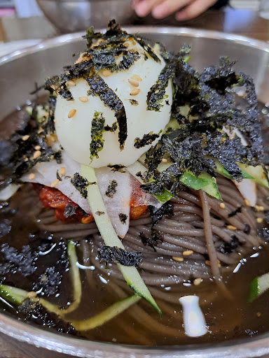 Read more분위기는 어르신분들이 많은 편안한분위기 잘생각해보면 메밀막국수먹는데 어른들이 많은건 말다한거 아닐까요 소개받을때 배터질만큼 준다고 했는데 정말 먹고 죽어봐라할만큼 많이줍니다(곱배기기준) 막국수 맛있고 양많고 묵사발도 맛있습니다 동네주민으로 재방문의사 300프로 여름기준으론...