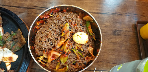 I ordered the spicy buckwheat noodles in cold broth (₩9,000). The dish contained a very generous serving of buckwheat noodles. It hit the right notes in terms of flavor and texture. The buckwheat noodles were al dante and the spicy sauce complimented the cold broth really well. I would definitely recommend this on a hot summer day.