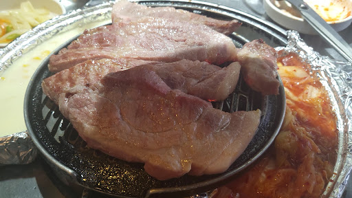 후기를 좀 읽고 갔는데 숙성소금구이 외에는 별 말이 없길래 소금구이로 주문했다 목살부위 같았는데 무난했다 직접 고기를 구워야해서 제대로 굽고 있는게 맞나, 조명때문에도 그렇고 되는대로 구워먹었는데 괜찮았다 가격이 다른 곳에 비해 많이 저렴한 편인데 양도 왜인지 작게 느껴졌다 둘이서 4인분을 먹고도 껍데기도 시킴;; 사이드인 김치랑 콘치즈...?라기엔 엄청 묽은 연유맛나는 사이드는 왜 익지를 않니.. 하는데 점점 보글보글 끓더니 4인분을 먹어갈 때 쯤에 적절하게 익혀졌다 된찌는 적당히 칼칼하고 적당히 구수했으며 특별한 맛은 아니었다 잊고 있었다...대학가란 사실을 애기 마늘을 고기랑 같이 구워 먹는 것도 괜찮았고, 콩나물+약간의 양파,상추 겉절이가 이 집에서 제일 맛이 좋았다!! 세 번 리필함ㅎㅎ 돼지껍데기는 간장양념에 절여져있었는데도 많이 싱거웠고, 콩고물을 주셨는데 믹스매치 그 자체였다...
