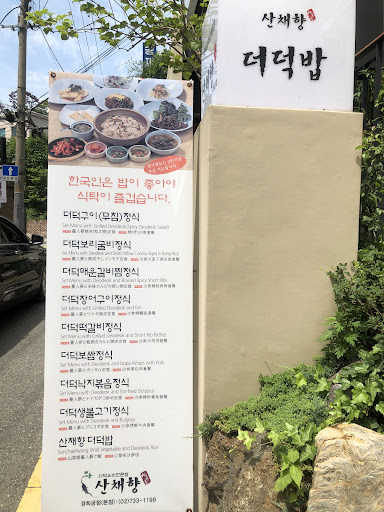 Came in for lunch because the place looked nice and the lady called to us from the second floor, which we thought was nice. We didn't know what "deodeok" was, so we had to try it. We got the set menu with the pork, and hoped it would be good. The table quickly filled with many side dishes, including soup and rice, which we didn't really know or understand what they were, and than came the plate with the pork slices. We started eating and everything was amazing!!! There were so many flavors and son many textures, and they all combined in harmony. I'm glad I decided to come in, and I recommend you to come here, no matter where you are...