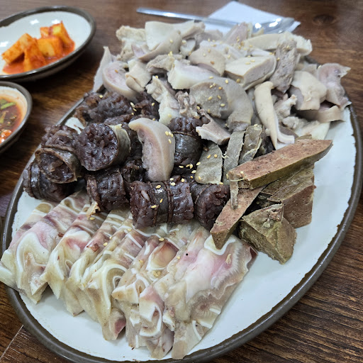 힘들고 손도 많이 가는 작업인 머리고기와 편육,순대등을 직접 삶고 만드는 흔치 않은 집이고 거기다 맛도 좋고 양 푸짐하고 가성비까지 완전 좋은 요즘 같은 고물가시대에 더 가치가 빛나는 혜자스러운 로컬 순대국 맛집 입니다.. 다만 단점이라면 사장님이 혼자 다 해내기 때문에 주문후 음식이 나오는데 시간도 좀 걸리고.. 일에 지쳐 있다 보니 손님 응대가 좀 퉁명스럽게 느껴질수 있습니다.. 그리고 메인인 국밥이나 수육,순대등은 아주 나무랄데 없이 맛있지만..아쉽게도 김치들이 중국산 시판 배추김치고 깍두기도 맛이 없어요.... 그래도 이 가격에 이런 맛과 푸짐함 이라면 아주 훌륭한 순대국...