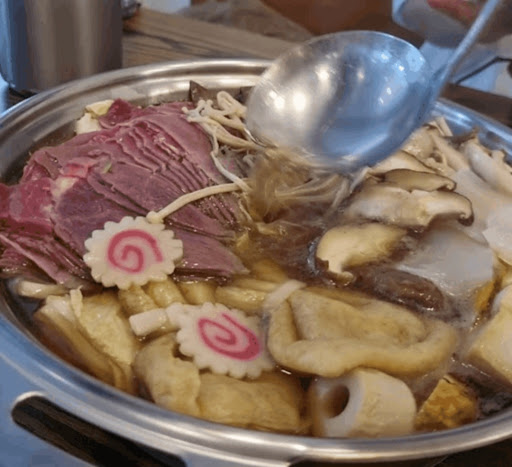 제가 주문한 메뉴는 스키야키(관동식). 진한 간장 베이스 육수에 얇게 썬 소고기, 유부주머니, 배추, 버섯, 어묵, 나루토 등 다채로운 재료가 풍성하게 담겨 국물의 깊은 맛과 어우러지며 마음까지 따뜻하게 녹여주는 정통 일본식 전골이었어요. 특히 전골을 다 먹고 난 뒤 볶아 먹은 계란 볶음밥은 마무리의 정석. 진한 국물의 감칠맛을 그대로 밥에 담아 한 입 한 입이 고소하고 만족스러웠답니다.