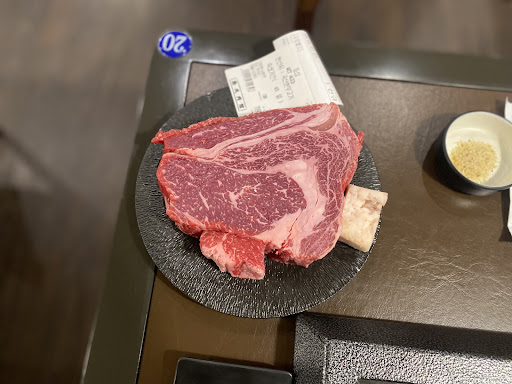 먼저 먹은 웻 에이징 등심은 드라이 에이징에 비해 수율 손실이 적다 보니 가격이 더 저렴하다. 마블링이 적당히 껴 있었고 직원분께서 통째로 올려 시어링해 주셨다.