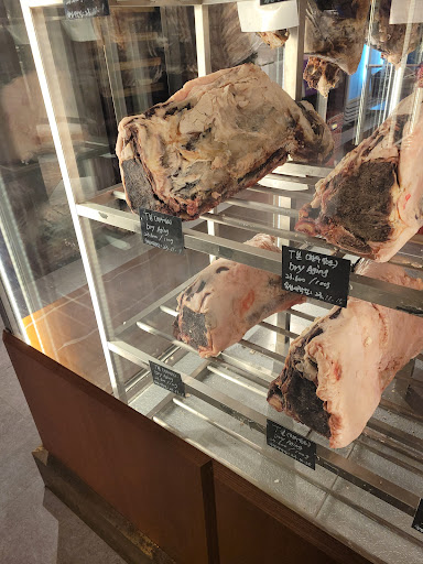 입구에 들어서면 드라이 에이징 되고 있는 고기들이 쇼케이스에 쫙 진열돼 있다. 보는 재미가 있을뿐더러 숙성에 대한 업장의 자신감이 내비치는 인테리어적 요소다.