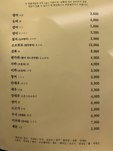 재방문 9만원짜리 c코스 먹고왔어요. 6만원짜리보다 조금 더 나와요. 6만원짜리 구성 전부다 나오고 특등급 한우구이 2점, 금태초밥1점, 갑오징어초밥1점, 기억안나는 초밥1점, 전복내장무침같은거 정도 더 나왔나.. 뭐가 더 나왔을 수도 있는데 기억이 잘 안나네요. (서비스로 나온것도 있어서 확실하지는 않습니다.) 한우구이 진짜 살살 녹아요. 부위가 새우살이랑 살치살이었어요. 오늘 곤부지메 광어회가 정말 유난히 특별하게 맛있었습니다. 쫜득하고 풍미작렬! 초보분들은 쿰쿰한 냄새가 난다고 하실 수도 있지만...