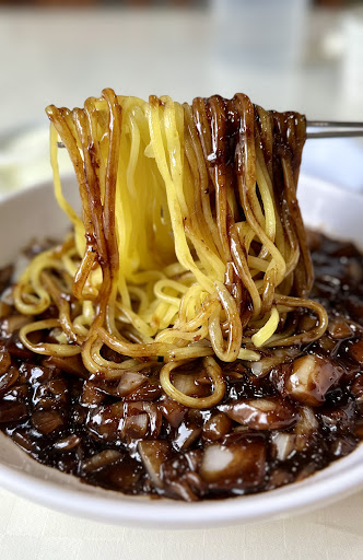 For vegans, I recommend ordering Jjajiangmyeon Goppaeggi (means double, you add 2,000 won and they give you extra noodles - meant for people who eat a lot but we order it this way so that we can share!) and a sweet and sour mushroom or kkanpoong mushroom as a main dish. Best kkanpoong mushroom in Korea, hands down. (You could even say that it’s the best in the world.) So good.